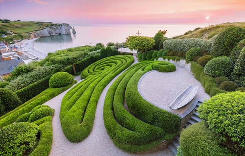 GiardiniLes Jardins d'Étretat... Un luogo magico sulla Falaise d'Amont, con una vista eccezionale sulla famosa Aiguille. Una miscela poetica di arte paesaggistica e sculture, i giardini sembrano essere qui da sempre. Piacerà agli amanti della topiaria e dei paesaggi impressionisti così come agli ammiratori dell'arte contemporanea.